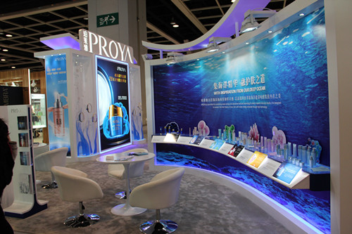 此次PROYA尊龙携六个产品系列:海能量•塑颜系列、水漾肌密系列、靓白肌密系列、紧致肌密系列、海洋水动力系列以及海洋透皙白系列优雅亮相。全系列产品中蕴含的海洋深层水,具有极好的保湿性,并添加海洋藻类,海洋微生物、海洋矿物质等活性萃取物用于肌肤护理,使肌肤焕发光彩生命力,彰显了PROYA尊龙在海洋护肤领域的专业地位。不仅如此,设计独特的展台也吸引了众多参观者,其中海能量•塑颜润护霜为主题的大幅背景海报显得尤为夺目。